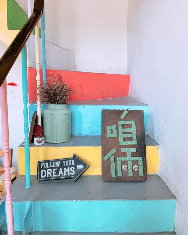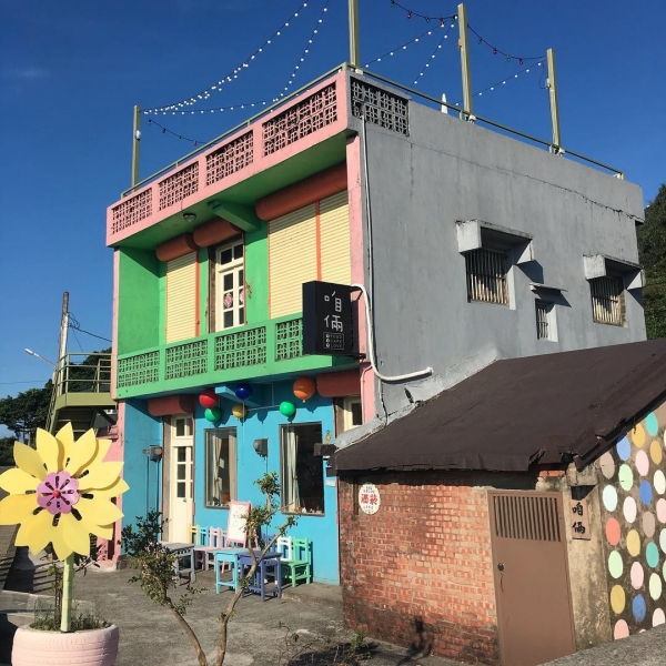 兩層樓的老屋被漆上繽紛的色彩,可愛又吸睛,童趣、復古的佈置妝點整體空間,令人童心大爆發!