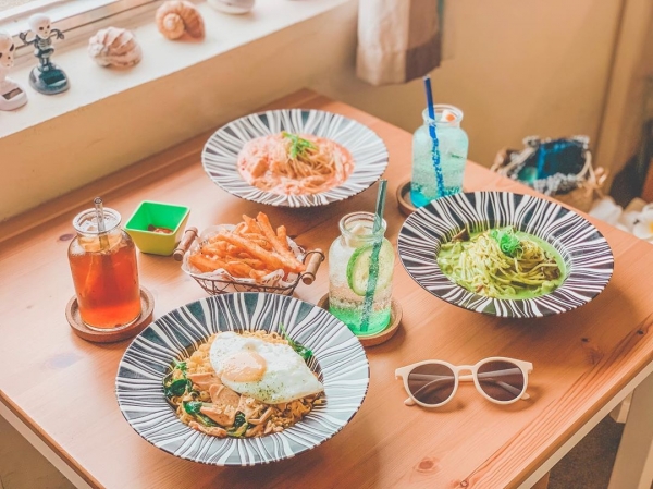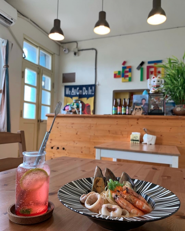 餐點主要以義大利麵和輕食為主,也有多種清涼消暑的飲料可以選擇~咱倆有三道招牌菜:「男人就愛吃豆腐」、「咱倆公仔麵」、「隔壁老王釣的海鮮」,每一道都讓人會心一笑呀!