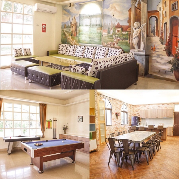 一樓的公共區域有大沙發、撞球檯、氣墊曲棍球等休閒娛樂,大家可以在這裡交流、一起玩樂聊天~