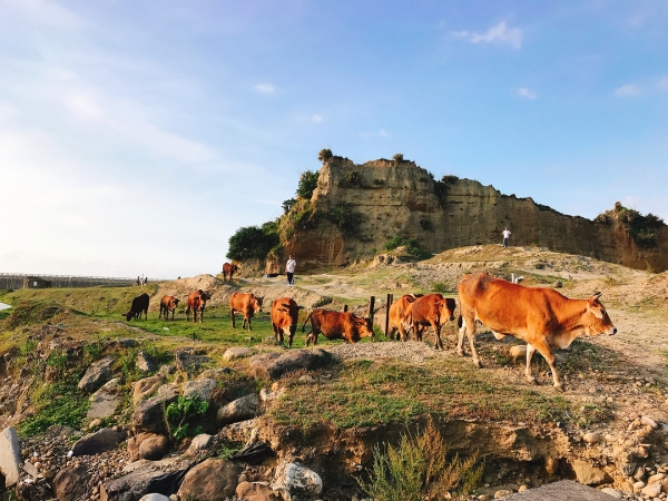 沿著西濱公路(台15線)開,位在八里焚化爐和林口發電廠間,一片引人注目的奇特小山丘,就是最近很熱門的打卡秘境景點,因為可以看到成群的水牛在這裡吃草,所以被稱為「林口水牛坑」。