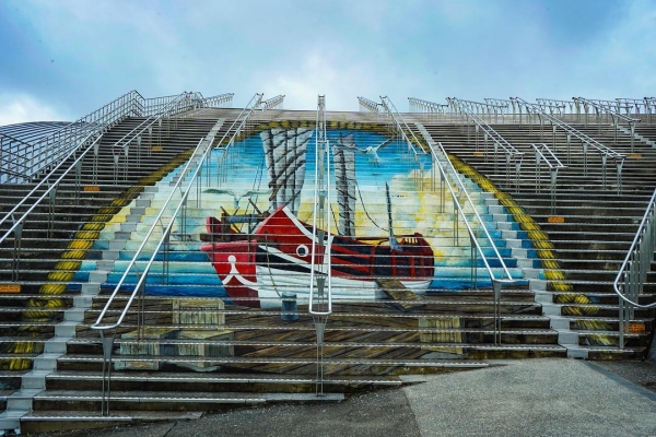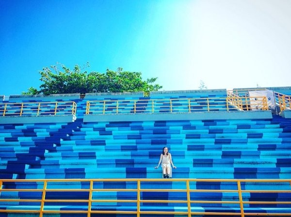 連運動場都開始有彩繪的出現啦,觀眾席的階梯上,漆上了藍色漸層,從遠方看上去跟天空結合而一,形成了美麗的場景,運動著心情也跟著愉悅了起來。