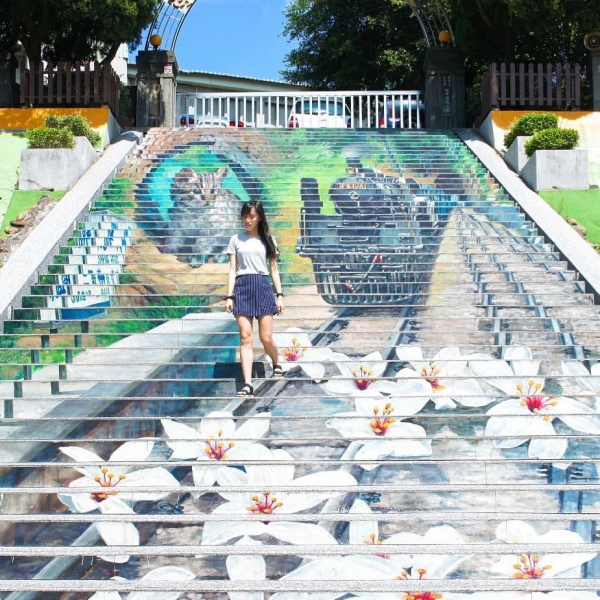這裡是地方重要信仰中心,3D意象彩繪階梯,引導人走到廟後方較高處,引導大家走上去觀賞更不同的景點,但這裡的彩繪美成這樣,在一個地方就要拍好久了阿~