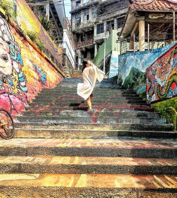 這裡的階梯是在紀錄金瓜石的文化資產,七彩的階梯雖然引起爭議,但這麼漂亮的地方,還是成功的成為了網路的熱門彩繪景點。