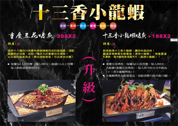 麻辣火鍋「水貨烤魚」豐原店為了迎接夏天到來,獨家推出「麻辣小龍蝦烤魚」,所謂小龍蝦烤魚就是「麻辣小龍蝦」+「重慶烤魚」,還能一爐兩吃。