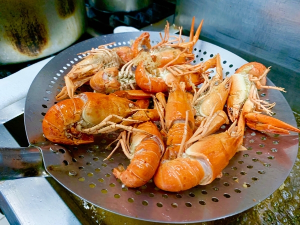 經過高溫油炸,小龍蝦呈現美麗的色澤!而且油非常的乾淨,所以衛生上一點也不用擔心。