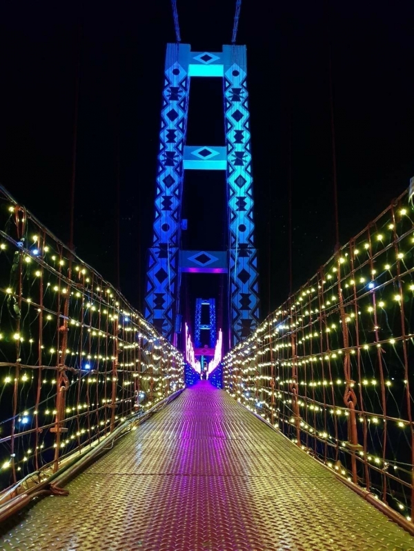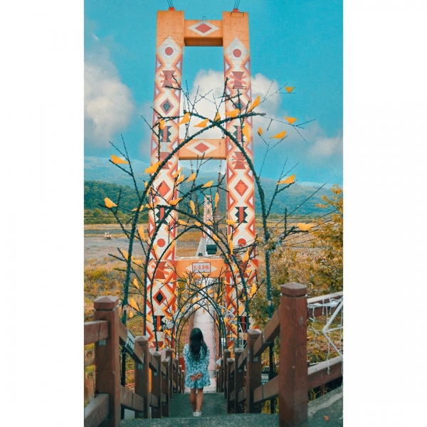 不只夜間的燈飾,寒溪吊橋在白天的時候本來就是熱門景點之一,有著獨特的圖騰裝飾,加上長度長、拍起來可是特別壯觀呢!