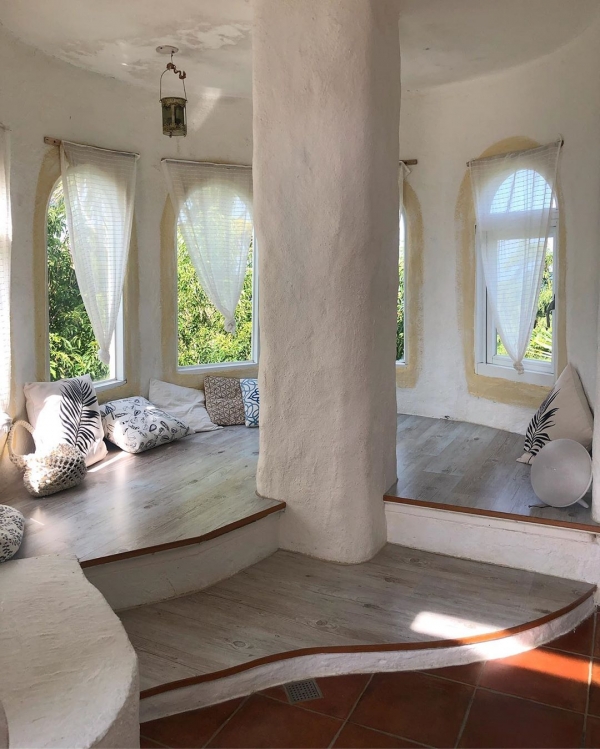 算是室內小陽台,有很多窗戶希臘式的窗簾,木頭地板再放幾顆抱枕,在這裡我大概狂拍了一百張,這樣的空間光是看了就覺得舒服~