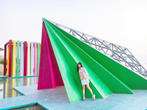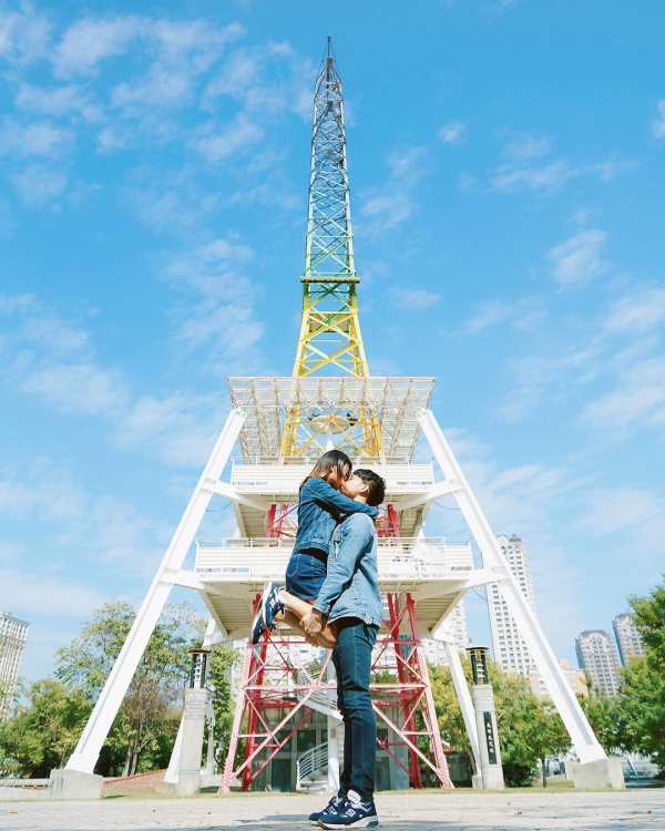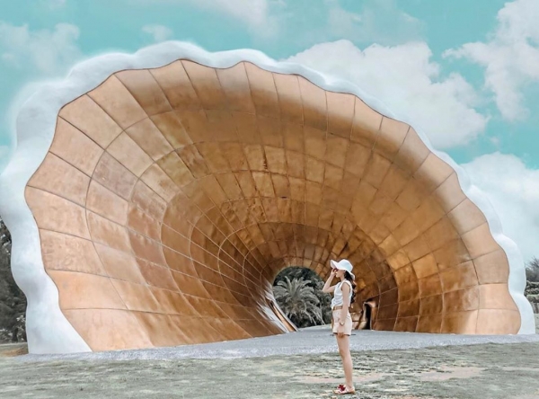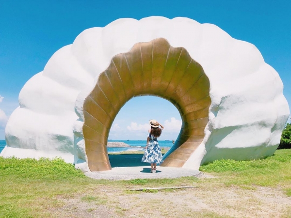 來旗津當然不能錯過「旗津教堂、貝殼館」,雖已是眾所皆知的景點,但仍是很嚮往來此一遊,因為裝置藝術搭配水池與藍天超美的,這處已成為婚紗界熱拍場景之一了呢~
