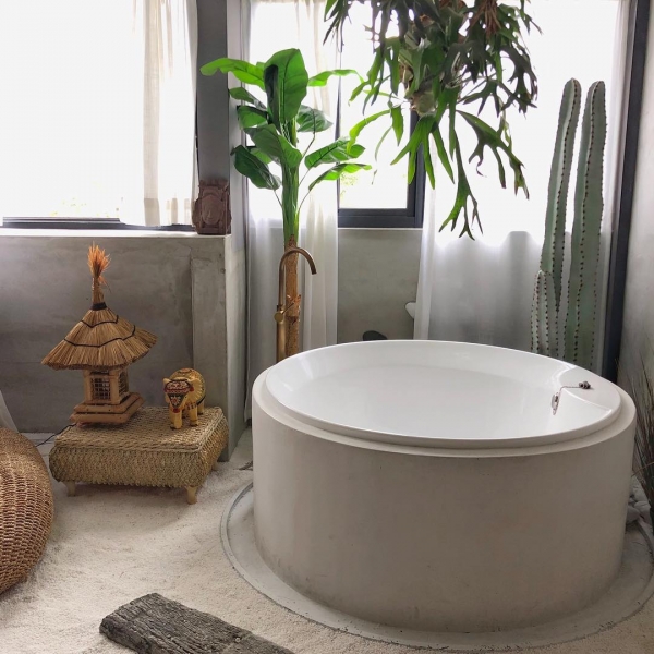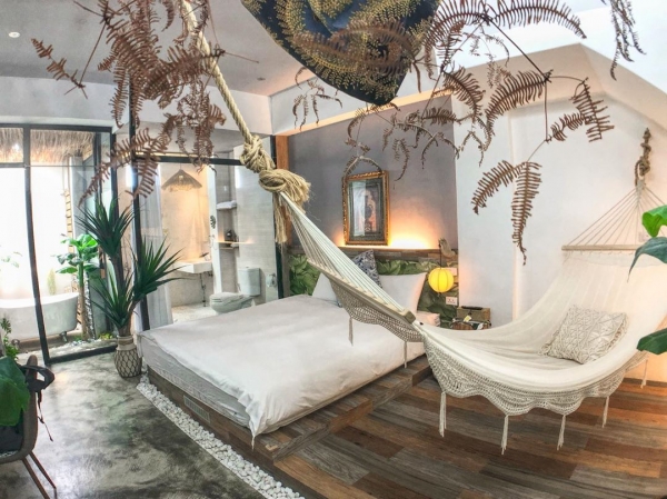 這峇里島風情的房型真的很美,地上還鋪滿了小石頭看起來像沙~