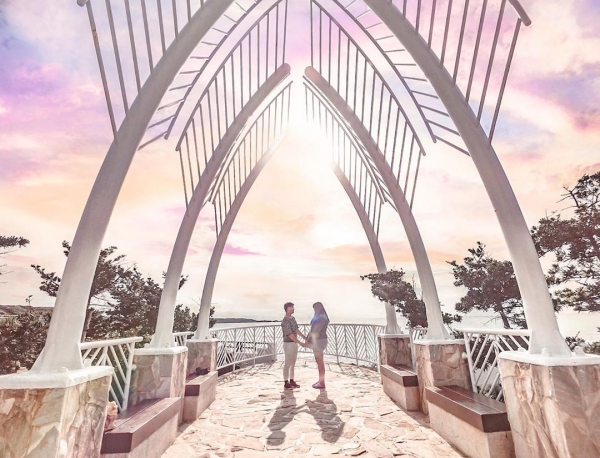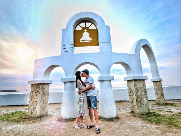是全台首座婚紗廣場,結合時尚、景觀、休憩的新興據點—幸福石門,以白色色調為主體的地中海式建築,加上潔白無瑕的鐘樓迴廊,搭配北海岸海天一色、碧海藍天的自然景觀,讓人彷彿就像置身於希臘海岸一般,浪漫氛圍展露無遺。