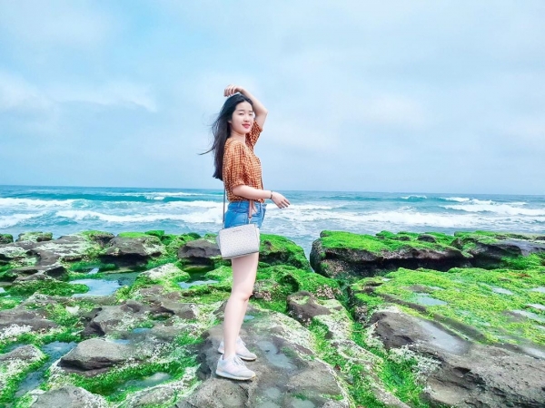 老梅石槽又稱綠石槽海岸,因為大片海藻附著在石槽上,放眼望去,綠意盎然,故而得名。是全臺少見的特殊景觀。
