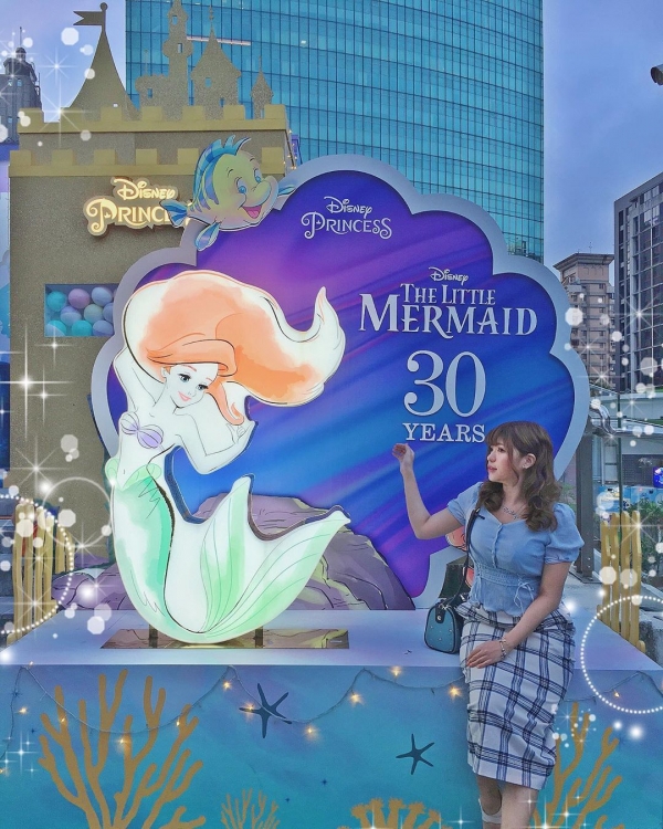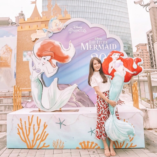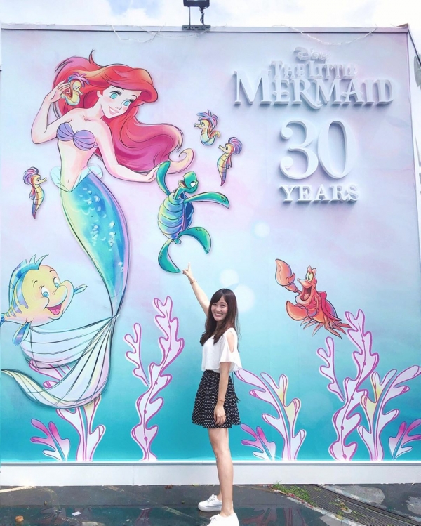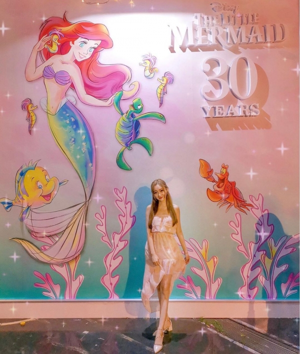 《小美人魚》艾莉兒獨自擁有一面打卡牆,顏色夢幻繽紛很適合少女拍照。