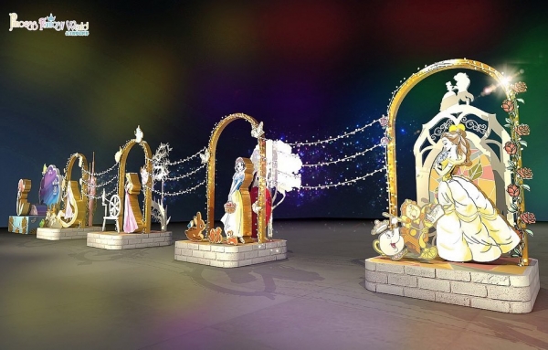 還特地設置各公主的立牌拍照區,夜晚燈串更是美麗。