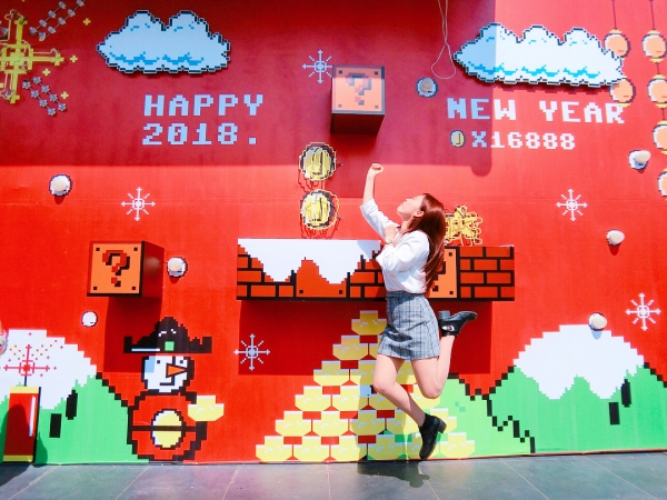 「奮力一跳!我要長高!!」誰跟我一樣也喜歡玩超級瑪莉??每年的裝置藝術都會改變喔!