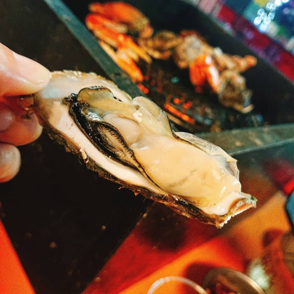 除了主角泰國蝦,其他的海鮮也不遑多讓!內行人來到這裡都會先搶每日現送的「東石鮮蚵」以及三點蟹,另外還有干貝、鳳螺、鮮魚等,說這餐是痛風餐實在不為過XD