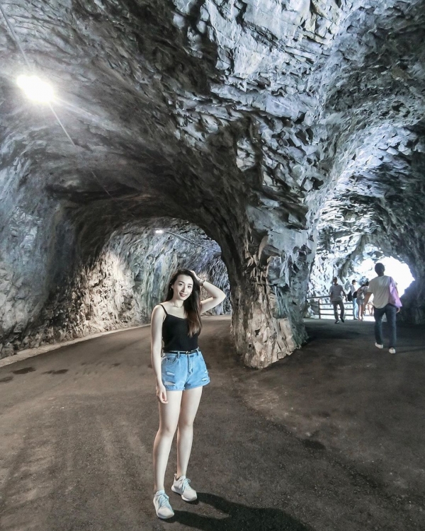 進入九曲洞後,山光水色都被隔絕在外,彎曲的公路只能看見堅硬的岩層,而從靠近溪谷的洞穴中方能一窺峽谷風光。
