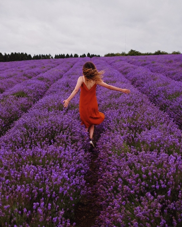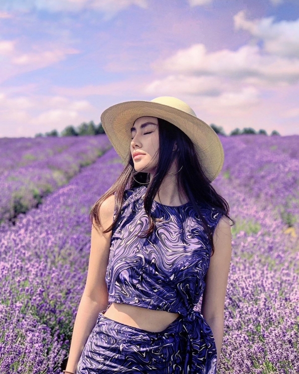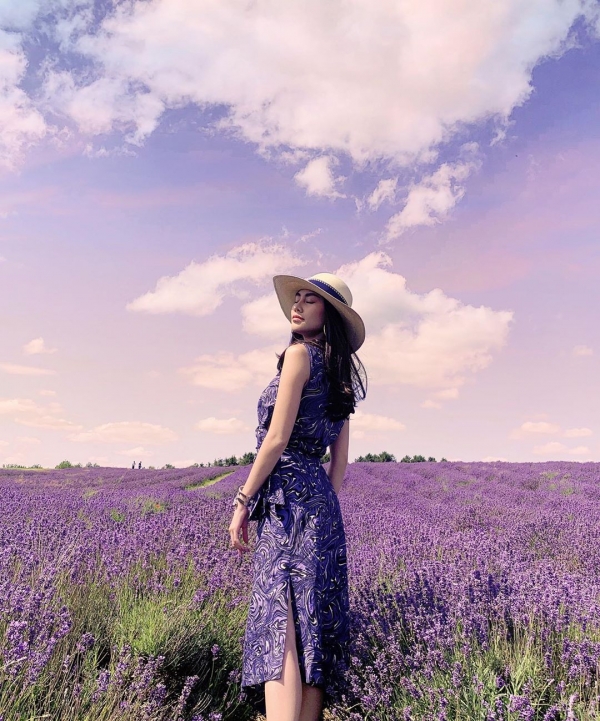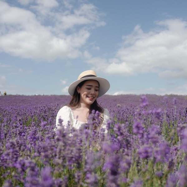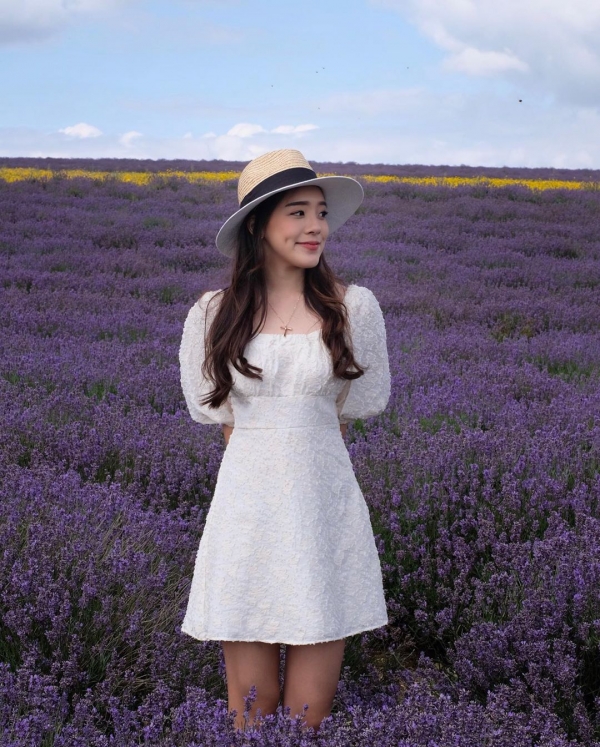 純白色的洋裝配上紫色的薰衣草花田,可以馬上換頭貼了。