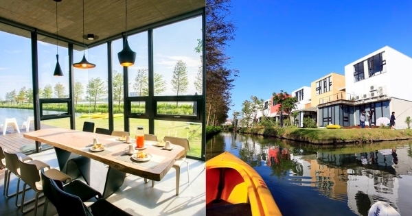小島位於宜蘭的田野風光中,彩色的小房子一整排相當亮眼吸睛!園區內最特別的就是有規劃170米落羽松河道,來就可以在這浪漫的氛圍下划獨木舟!