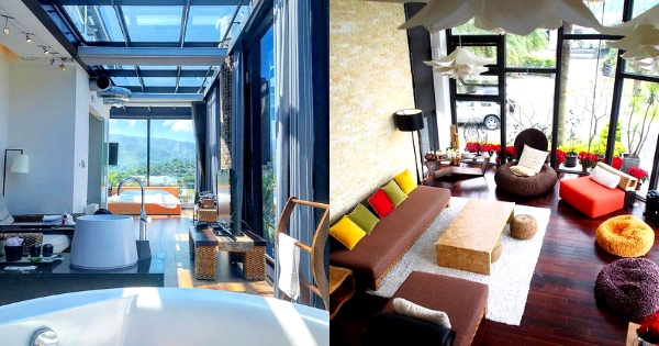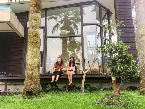 挑高的大廳,整片落地窗讓自然光灑落進來,木質溫厚的地板令人放鬆,既現代感又充滿南洋風情的擺設,感覺溫馨而舒適。