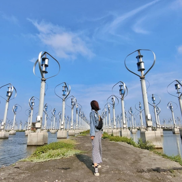 座落在魚塭之間的王功風力發電機因與藍天白雲相襯,故有著外星人的秘密基地與外星人打蛋器之稱,是時下流行的打卡聖地。
