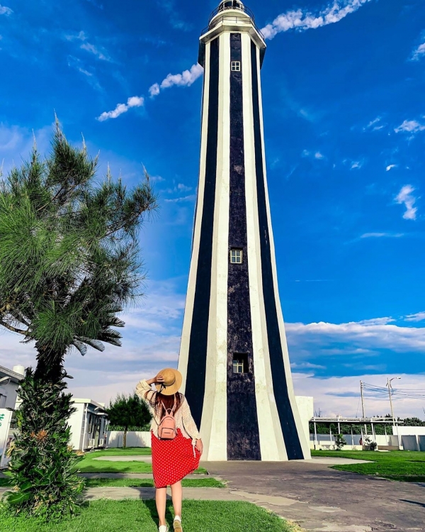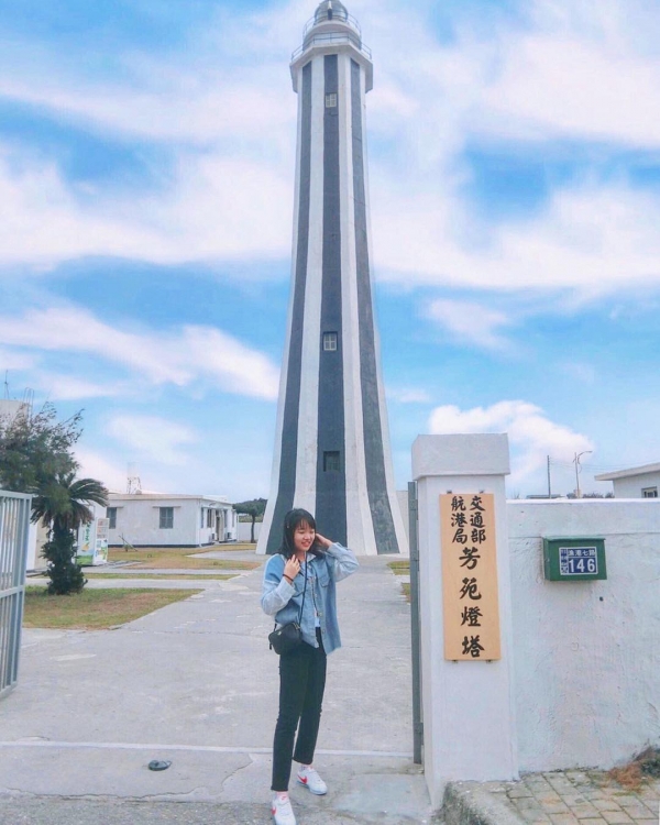 是全台最年輕的燈塔!「芳苑燈塔」外觀呈現一個八角形的鋼筋混泥土建築物,頂層外有環繞陽台,黑白相間的條紋配色,有助於漁船在日間辨識,而燈器則為「高美燈塔」停用後拆下沿用。