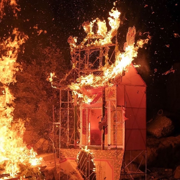 看著熊熊的火光燃燒大士爺,民間認為所有來陽世享香火的亡靈,都歸大士爺管理。