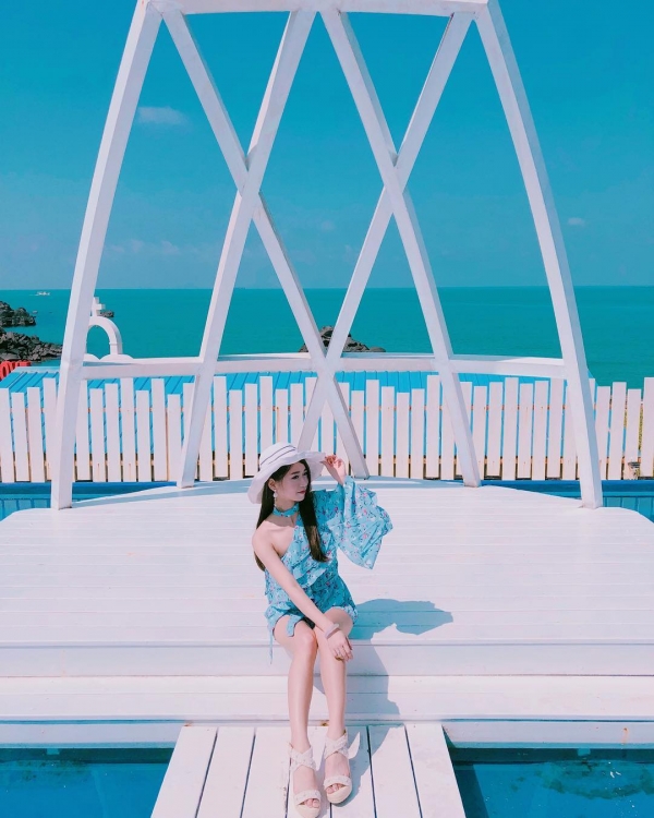 外面的設計是地中海希臘風,以藍白色系為主,剛好可以跟蔚藍的海洋相輔相襯,帶來完全清爽的氛圍,或許可以讓人聯想到希臘藍與白建構成的夢幻天堂吧?