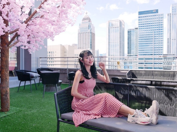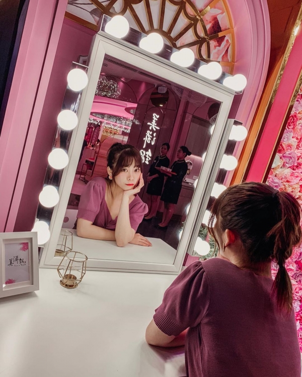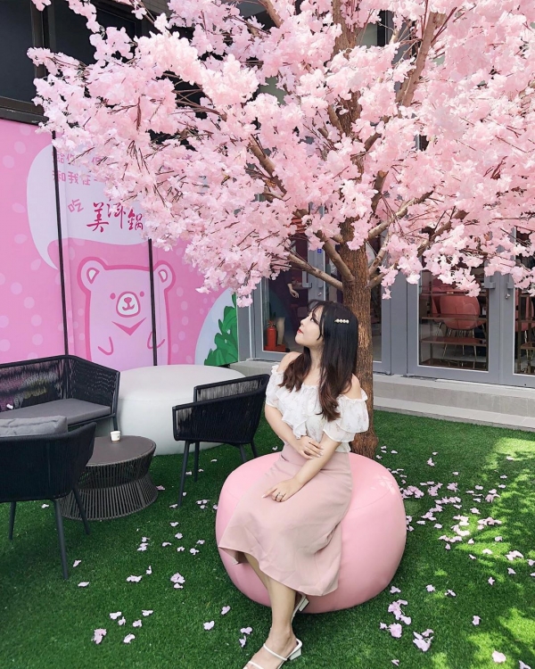 不只室內時尚優雅的粉紅天堂,戶外區也有粉嫩的櫻花樹造景,讓你拍好拍滿!