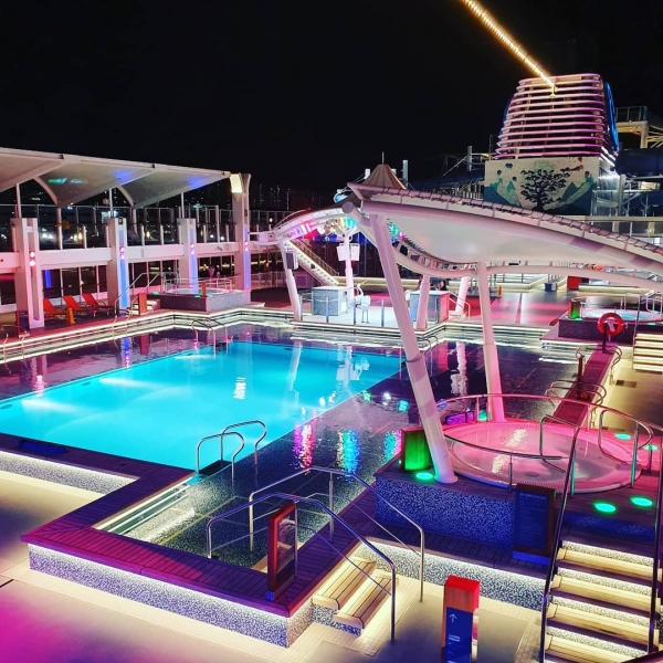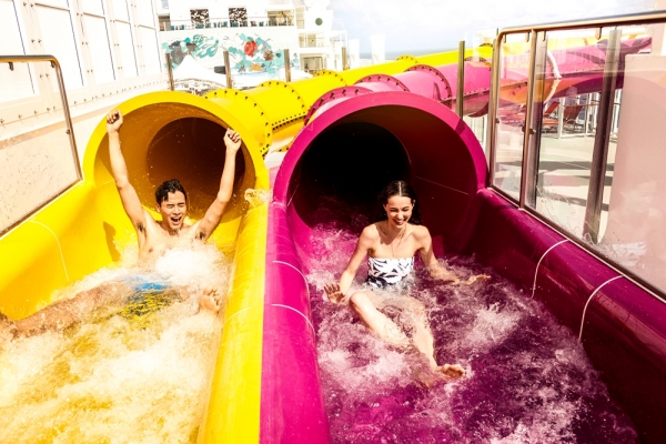 可以從早玩到晚的郵輪戲水區,完全不怕在船上沒事做,光在甲板泳池區就可以泡上一整天!