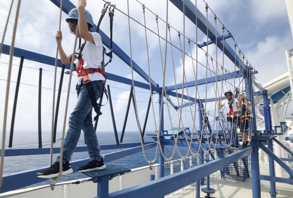 世界夢號的頂層甲板有露天電影院、露天籃球場、數座大型划水道、攀岩場、繩索場、付費的VR體驗遊戲區,再加上免費且僅能讓小朋友進入的熊貓夢想天地,扣掉岸上的觀光的時間,頂層甲板這些設施應該很能夠滿足許多人的需求了。