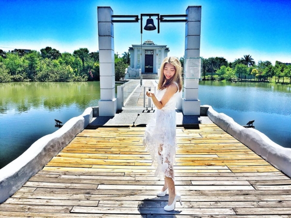 坐落人造湖畔的「水上永恆教堂」,希臘式建築上渲染純白,簡約造型加上水波漣漪,從遠處就散發出滿滿的浪漫氛圍,讓人誤以為來到國外神秘小徑,如此動人的歐風景致,外拍女孩們看到全都無法抵抗,瞬間掉入它的夢幻吸引力中。