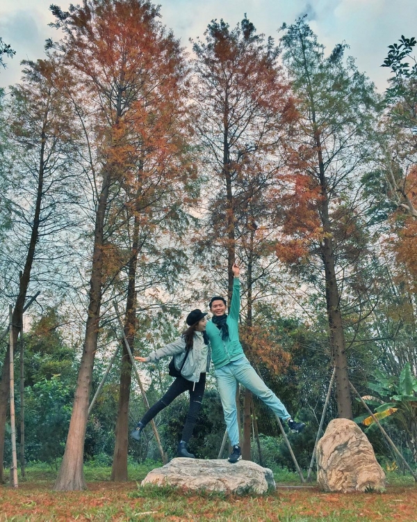 整個落羽松愛心池很寬闊,落羽松也剛好轉紅,不論是用相機手機隨手拍都很美。