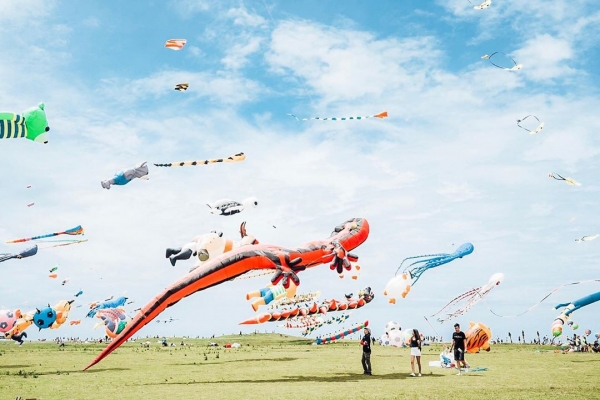 2019新北市北海岸國際風箏節,今年9/21將移至石門風箏公園舉辦辦!有德國、美國、日本、星馬、大陸與台灣超過20個隊伍、百位風箏好手會一同參加。主辦單位還邀請20對情侶到場放風箏,只要高喊愛的宣言,參與者可拿到價值3,300元的福袋。
