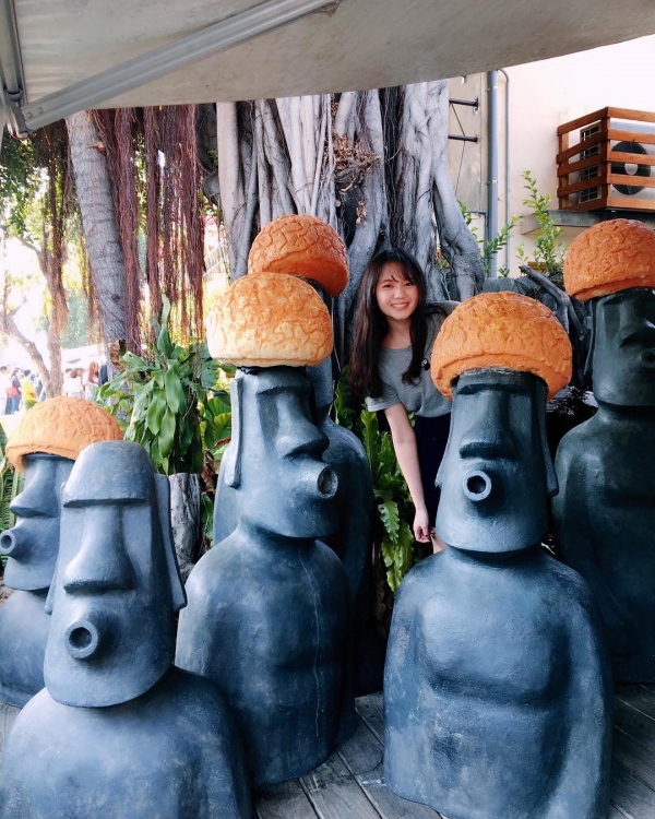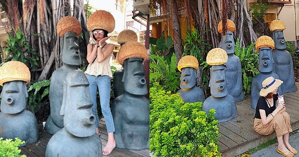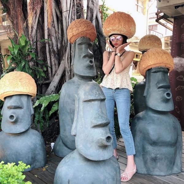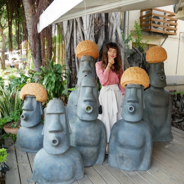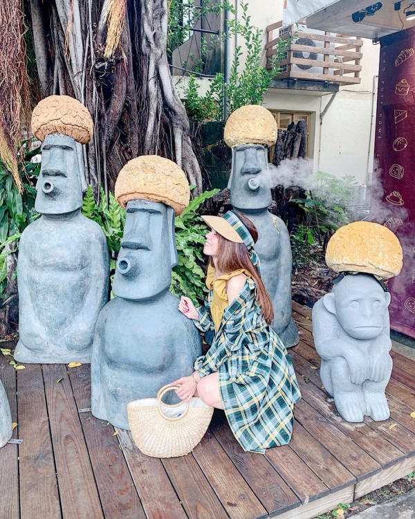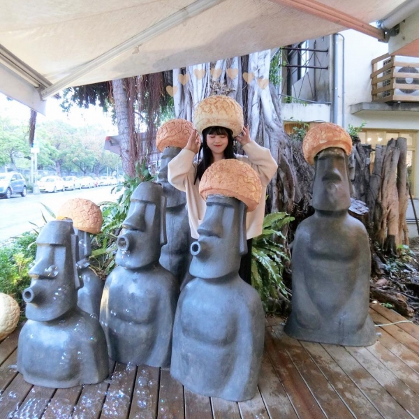 甚至還有提供泡芙安全帽,戴上這個泡芙帽拍照,融入這些摩艾像完全不是問題!