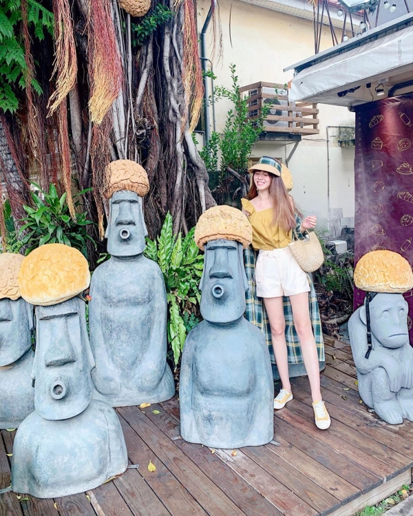 旅禾泡芙之家審計店去年初開幕就有一座很大的泡芙塔佇立在店門口,經過一定會被吸引目光,現在則是變成一整排頭戴泡芙的摩艾像,真的太可愛了啦!