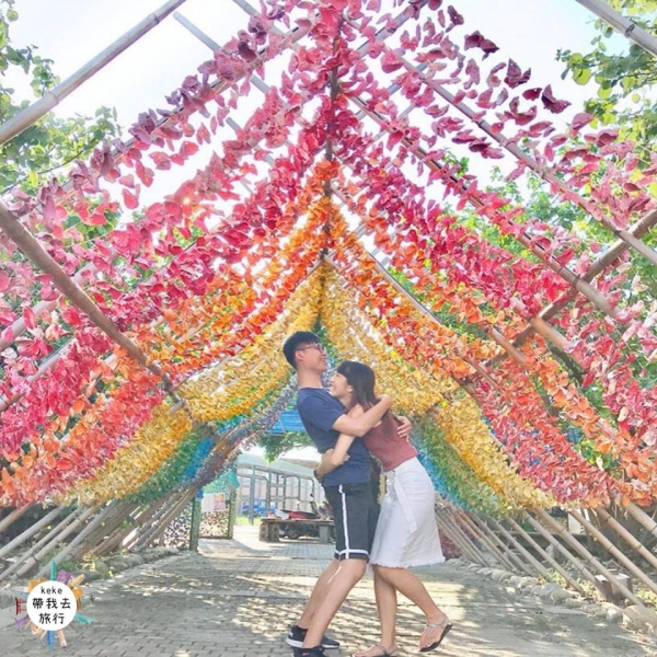 網美打卡景點「蚵藝彩虹隧道」,遠遠的根本看不出來,近看才發現超繽紛、超可愛,風吹過時還會發出清脆的聲音,真的是除了能拍出好照片還能順便聽一首輕快的交響樂呢!假日來這走走會是個不錯的選擇~