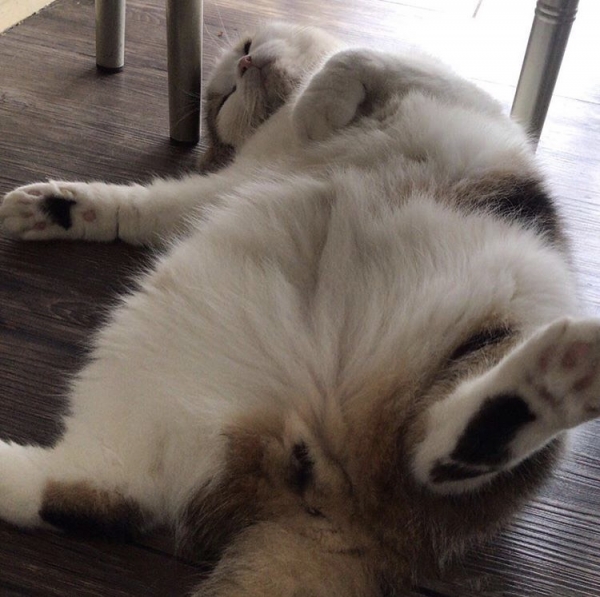 這位翻肚的皇上,你都已經睡到不知道人了啦!欠嚕!