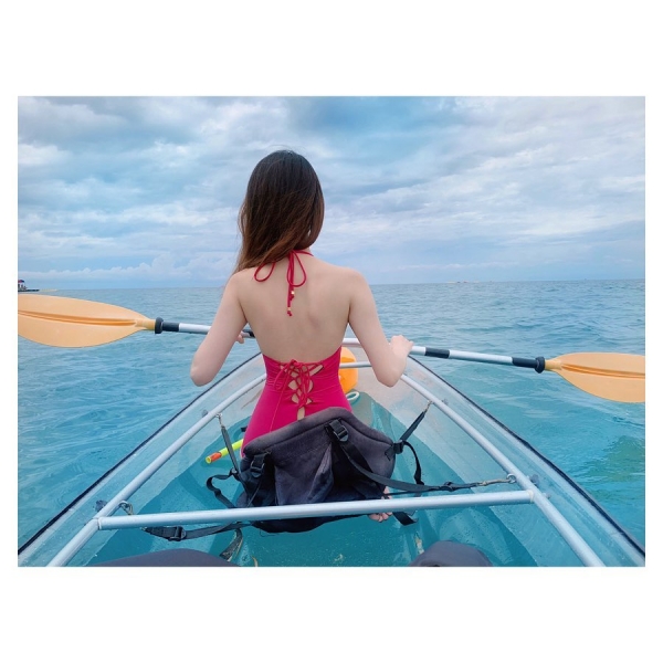 在透明的船體上,沒有遮蔽物阻擋,可以盡覽魚兒悠游、珊瑚礁王國的神秘海底世界,躺坐在透明獨木舟上,秒飛沖繩度假不是夢阿!