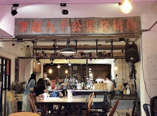 店裡面帶點頹廢的工業風格,室內座位區的牆上貼滿許多文字名言裝飾,而室外則是用強烈的黃光照明,讓室外區變得很像客廳般溫馨,在這邊喝杯咖啡都文青起來了~
