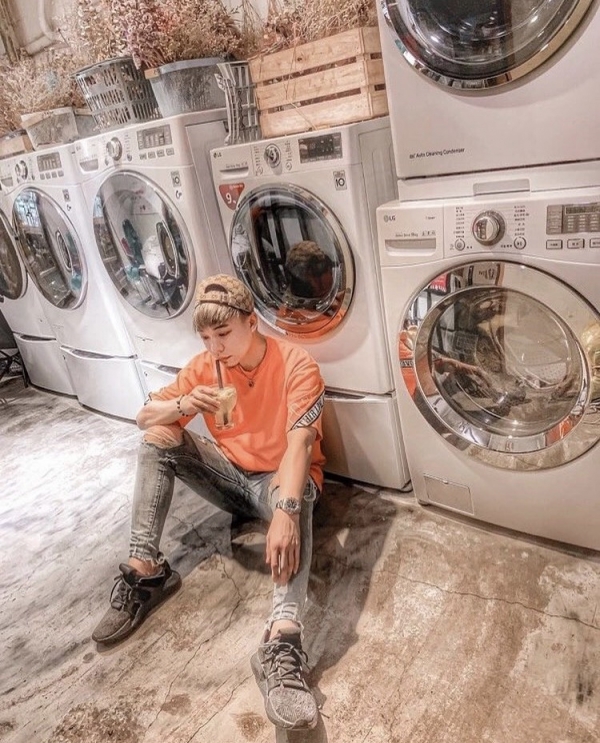 其實這間咖啡店除了賣咖啡,還是一個自助洗衣店,店裡擺出滿滿的LG洗衣機,除了來這邊嚕浣熊喝咖啡,還可以拿自己的臭衣服來洗,真是一兼二顧,摸浣熊兼洗褲!