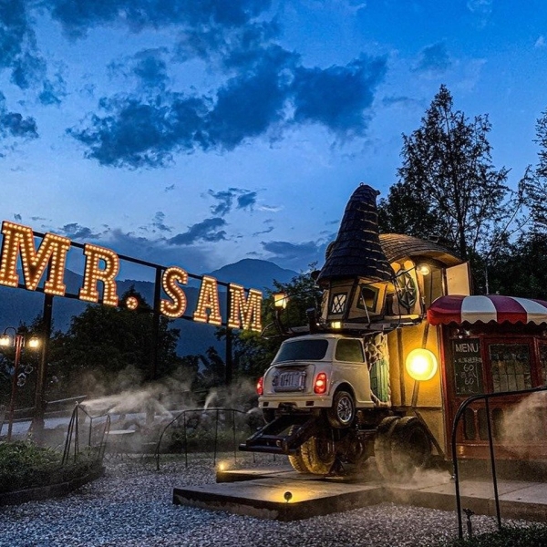Mr. Sam山姆先生咖啡館園區內8月開始加入新夥伴,以復古卡車、城堡、樹枝等元素拼湊起來的冰舖造型奇特繽紛~