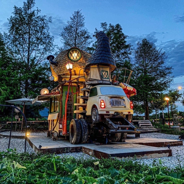 如今咖啡館旁邊又悄悄出現一座「花蓮奇怪城堡」,以卡車、城堡以及樹枝等元素打造的冰舖,讓人秒聯想到宮崎駿動畫「霍爾移動城堡」,讓這處童話般的景點夢幻程度再升級。