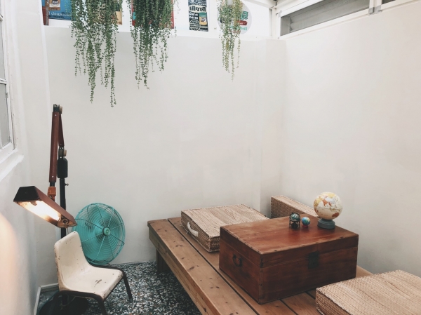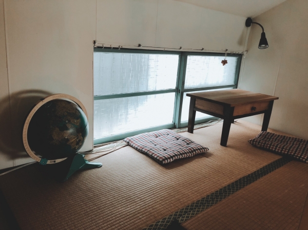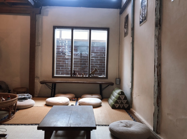 低矮的桌子旁有許多浦團跟靠墊,讓人可以舒服地躺者,坐著,特別放鬆,很適合點一杯茶飲,拿一本書,坐上一個下午