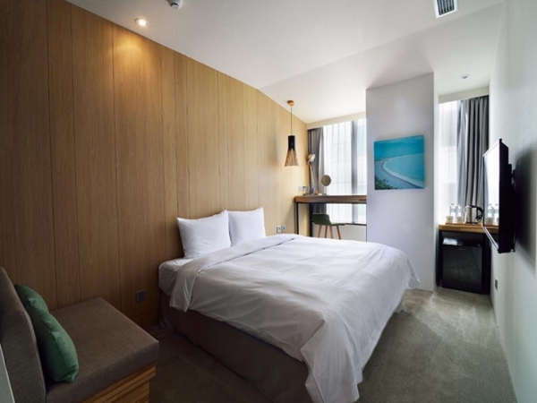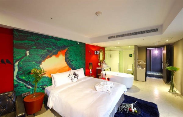 坐落淡水河畔的「承億文旅-淡水吹風」以馬偕博士"時光記旅"為設計主軸,帶領來到淡水的旅客,透過旅店徜徉在時光隧道。旅館大廳設計感十足,橢圓型天花板裝飾搭配造型座椅與綠色植栽,鮮明的對比讓人眼睛一亮!其中最為知名的就是與在地生態做結合的「紅樹林」,打造淡水河口與濕地意象,歡迎旅人在房內,細細品味淡水之美。