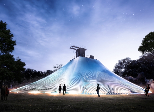 【大湳豎空】:擅長運用最簡單的材料,創建出宛如漂浮在空中的山或雲的景觀。以樹狀倒掛結構,輔以沙土效果,帶來全新反向視野。