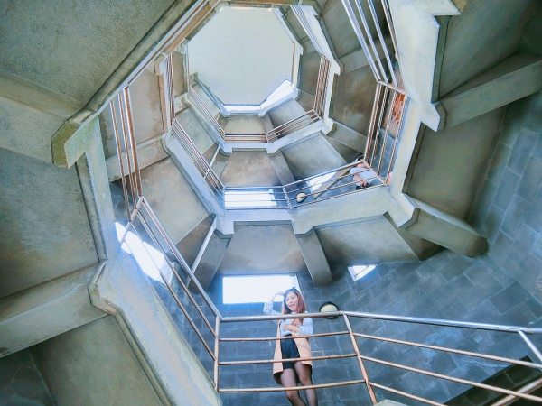 「八角瞭望台」一共5層樓高,隨著牆邊旋轉一路走上去,八角造型的瞭望台每層都有六面窗門可觀賞海景,甚至是每個階梯望出來都有不同的景色。