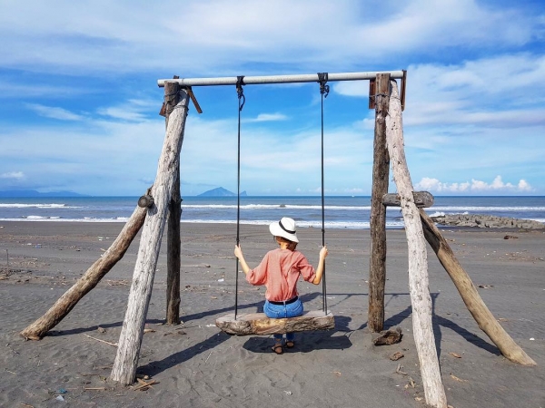 以漂流木打造而成的海邊盪鞦韆,讓你一邊吹著海風,一邊盪著鞦韆,還能欣賞龜山朝日的迷人面貌~來到廍後社區海岸盪鞦韆也可以順道來壯圍沙丘跟出海口走走喔,吹吹海風也是不錯的選擇~