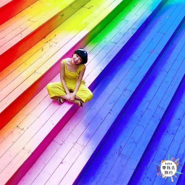 可愛無比的彩繪牆,多適合情侶們拍出逗趣的照片吶!不過也不要說小編沒有照顧單身的大家,還有美美的漸層彩虹階梯讓你拍,別人還以為是自動上濾鏡呢!