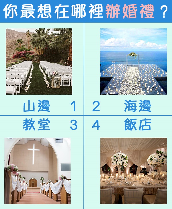 選出你最想要的婚禮?秒測你在愛情中哪裡最可愛?