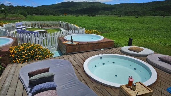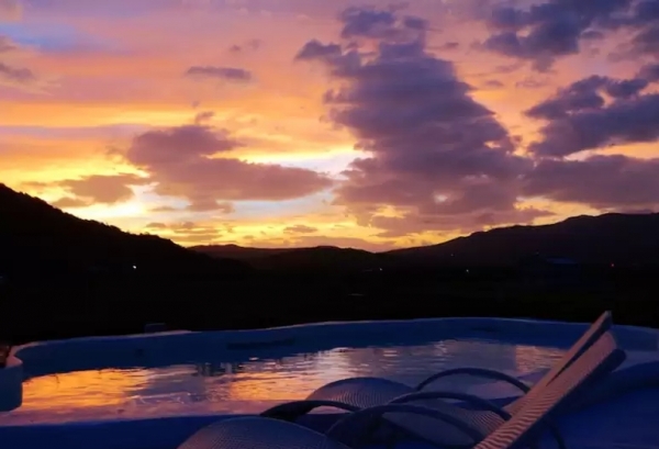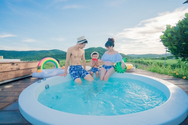最大的特點就是這個戶外雙泡澡池,白天時可以欣賞山景與田野,晚上時幾乎無光害的環境,可以好好的欣賞到一整片的星空~充滿美景還有泳池的風格,完完全全的把度假的感覺提升到最高點!